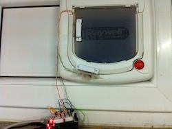 Build a Twittering Catdoor with an Arduino and two magnetics door contact. The Arduino is running the PushingBox API to manage the notification messages.